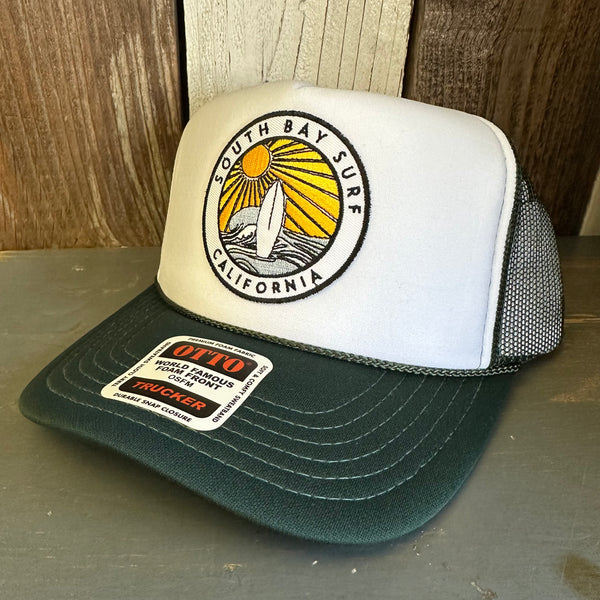 SOUTH BAY SURF (Multi Color Patch) - High Crown Trucker Hat - Dark Green/White
