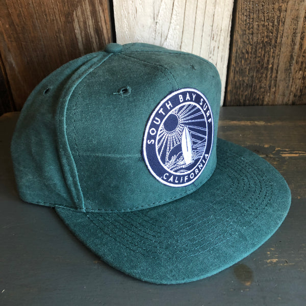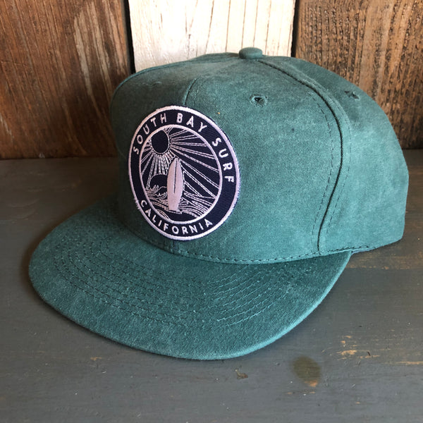 SOUTH BAY SURF (Navy Patch) - 6 Panel Mid Profile Baseball Cap - Dark Green