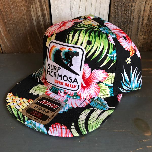 SURF HERMOSA :: OPEN DAILY Hawaiian Pattern 6 Panel Mid Profile Snapback Hat - A ‘o ia (Flat Brim)