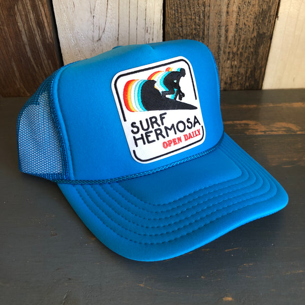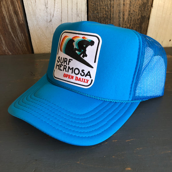 SURF HERMOSA :: OPEN DAILY Trucker Hat - Neon Blue