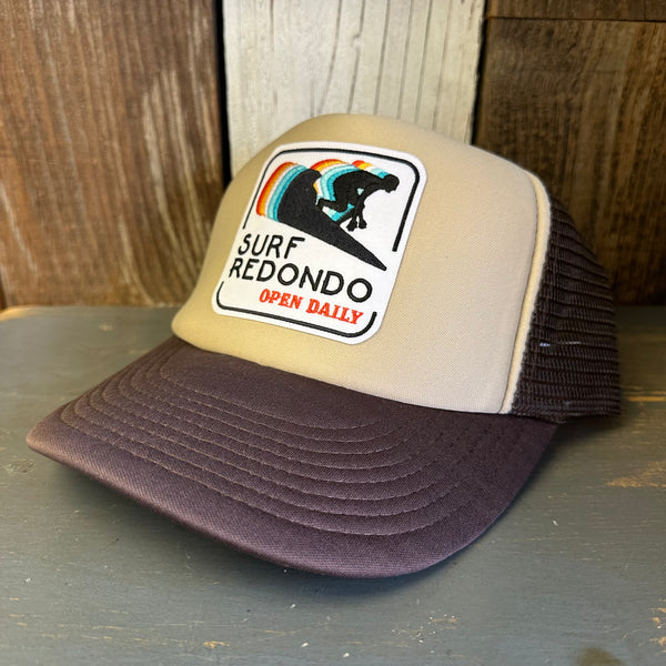 SURF REDONDO :: OPEN DAILY Foam TRUCKER Cap Hat - Brown/Khaki/Brown