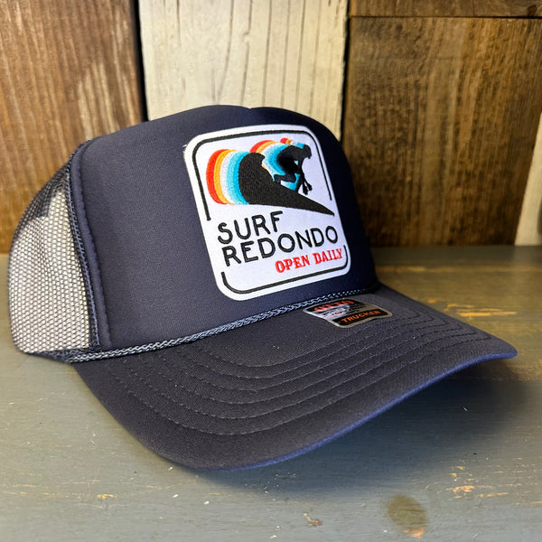 SURF REDONDO BEACH :: OPEN DAILY High Crown Trucker Hat - Navy