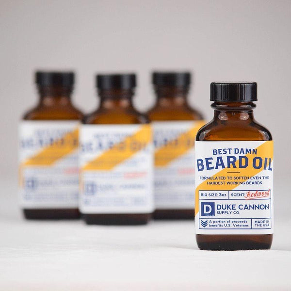 There is a fine line between the unruly beard of a grizzled mountain hobo and the dashing beard of a world champion. Go from unkempt to "kempt" withDuke Cannon's Best Damn Beard Oil.