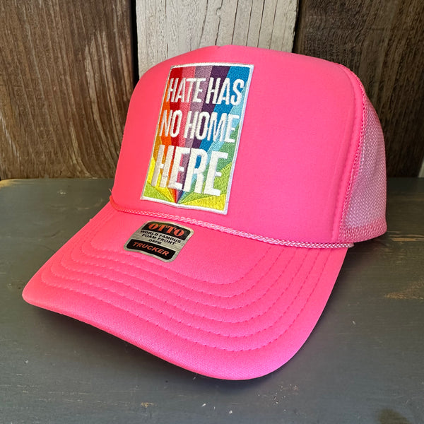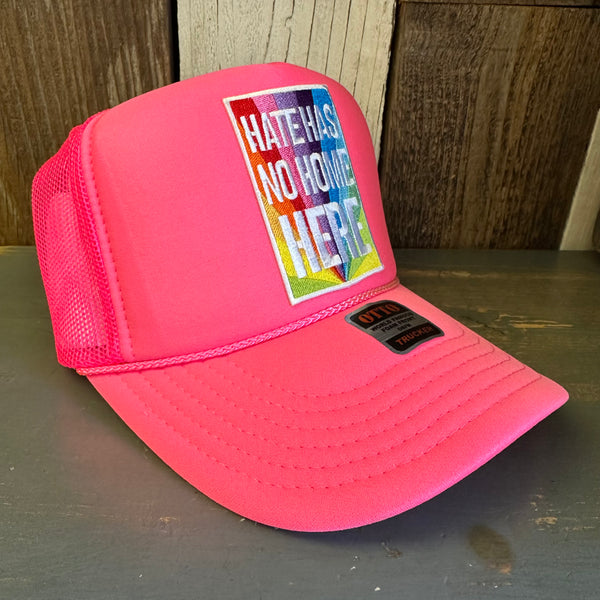 HATE HAS NO HOME HERE Trucker Hat - Neon Pink