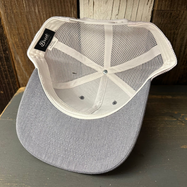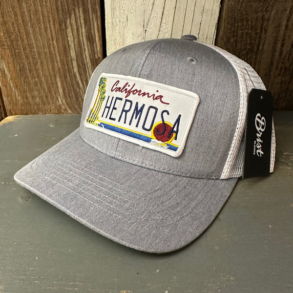 Hermosa Beach CALIFORNIA LICENSE PLATE 6 Panel Trucker Hat - Grey/White