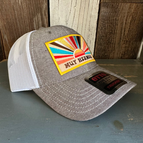 Hermosa Beach MUY HERMOSA 6 Panel Low Profile Mesh Back Trucker Hat - Charcoal Grey/White