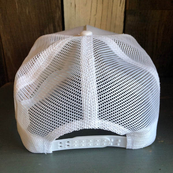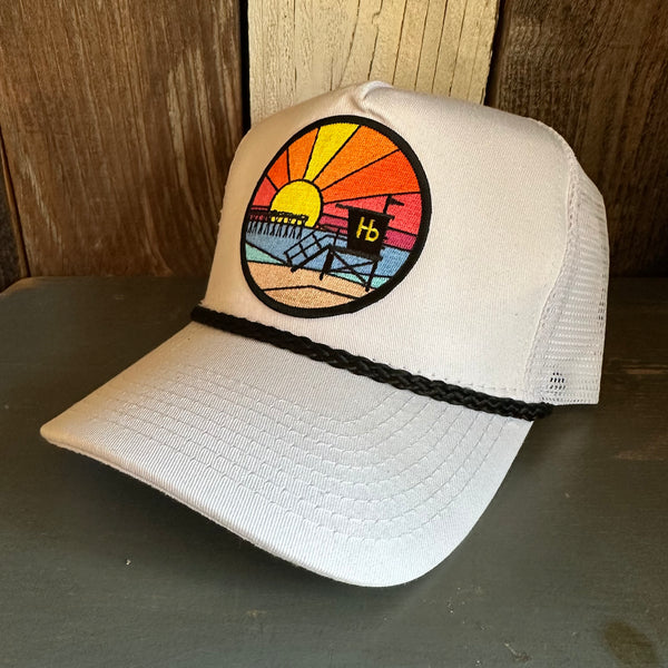 Hermosa Beach OBLIGATORY SUNSET 5 panel Mesh Trucker Rope cap - White/Black Braid