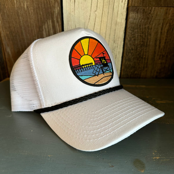 Hermosa Beach OBLIGATORY SUNSET 5 panel Cotton Twill Front, Mesh Back, Rope cap - White/Black Braid