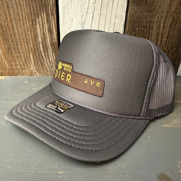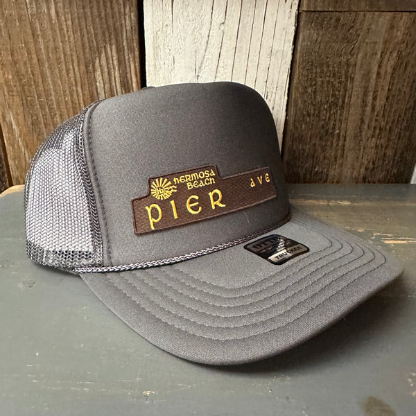 Hermosa Beach PIER AVE High Crown Trucker Hat - Charcoal (Curved Brim)