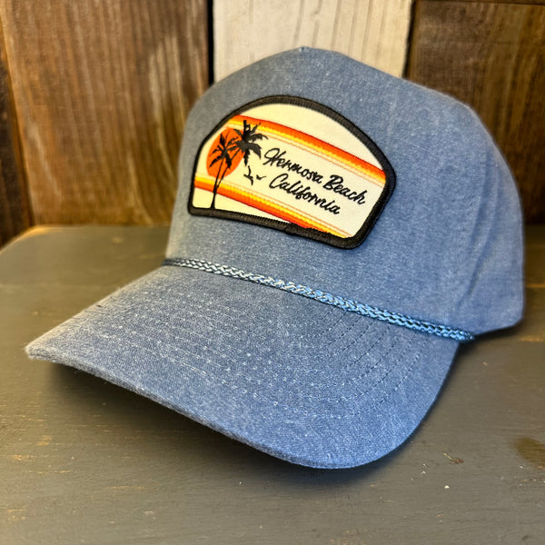 Hermosa Beach CHILL THE 4th OUT! 5 panel Stone Washed Canvas 2-Tone - Sky/White Braid