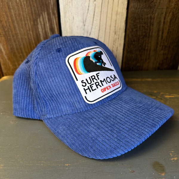 Hermosa BEACH SURF HERMOSA :: OPEN DAILY 6 Panel Low Profile Corduroy Cap - Blue