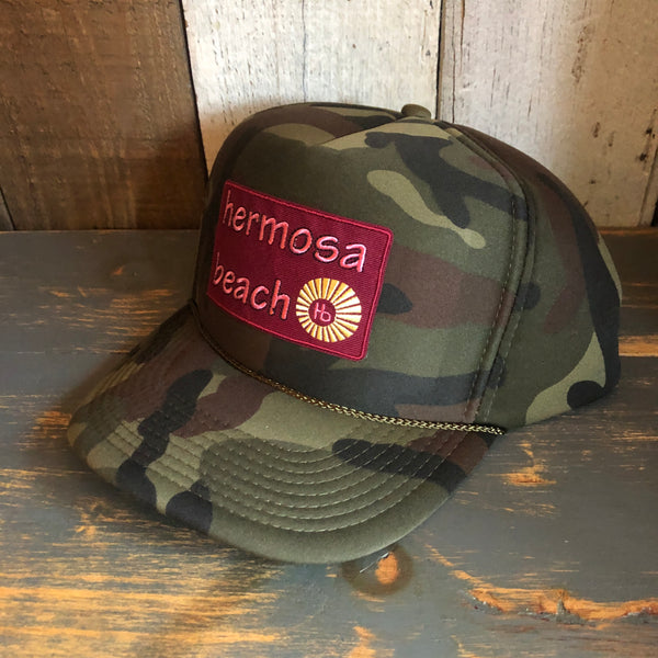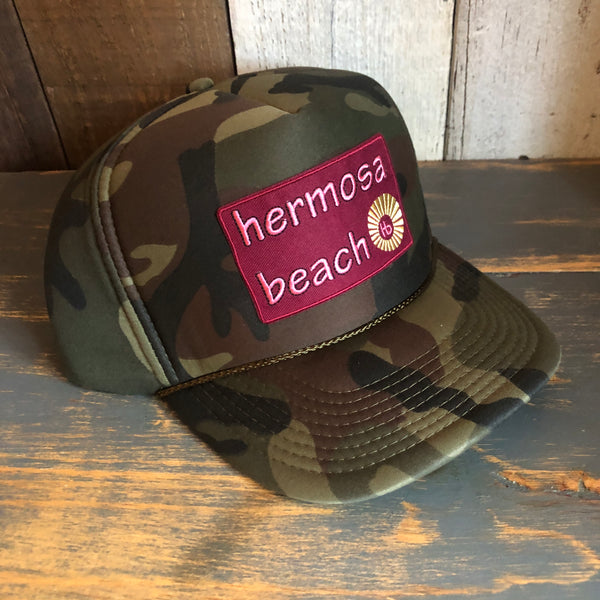 Hermosa Beach WELCOME SIGN Camo Winter All Foam Cap Hat - Full Forest Camouflage