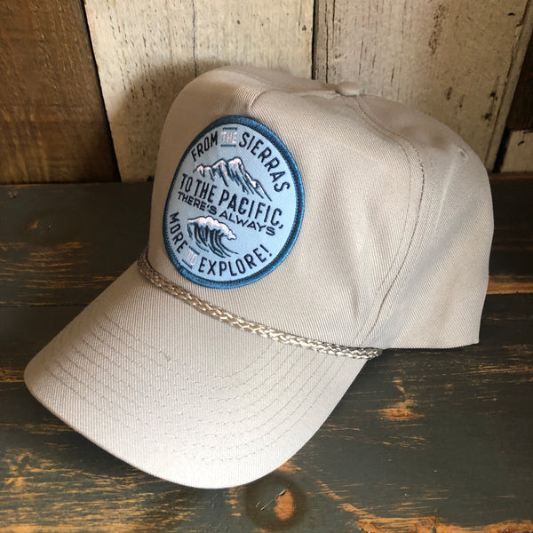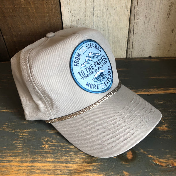 SIERRA PACIFIC 5-Panel Polyester Golf Cap - Grey/Grey Braid (FROM THE SIERRAS TO THE PACIFIC :: THERE'S ALWAYS MORE TO EXPLORE)