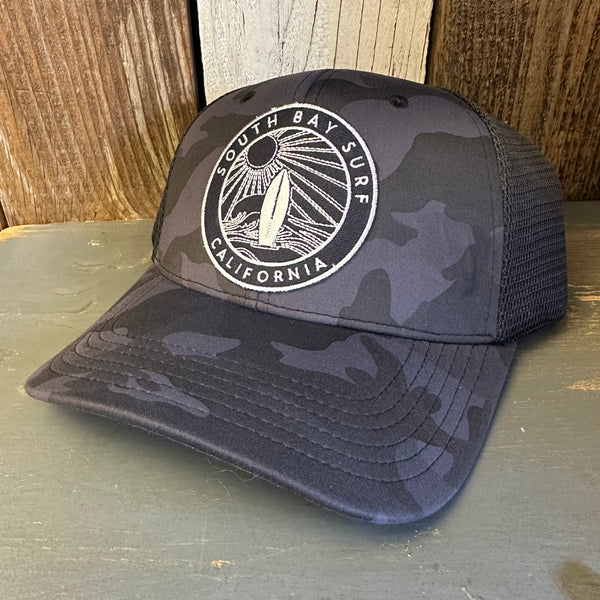SOUTH BAY SURF (Navy Colored Patch) :: "OTTO FLEX" 6 Panel Low Profile Mesh Back Trucker Hat - Midnight Camo