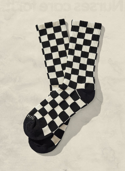 A classic pair of crew socks made in our signature checkerboard print…dig it? Designed with soft cotton in a weight that’s the perfect amount of thickness, these comfortable socks will upgrade your usual rotation.