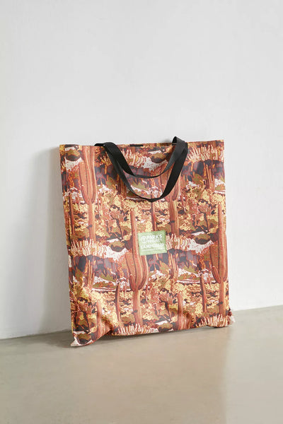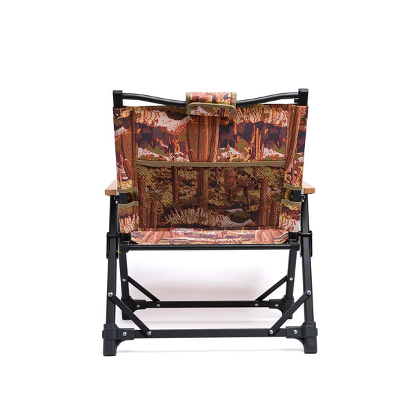 Soak up scenic views with this camp chair from Parks Project. This foldable chair features a durable, woven polyester seat and back rest with saguaro cacti printed allover. Supported by a lightweight metal frame that folds up into the included carrying bag, this camp chair is complete with an integrated mesh pocket at the back to hold your snacks, tech and other camp essentials.