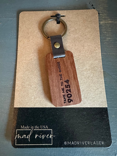 Wood/Veg Tan Leather Keychains - both biodegradable and compostable if left long enough.