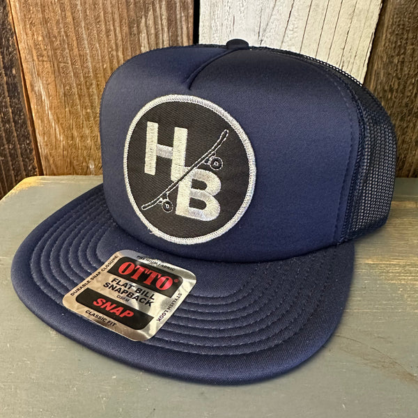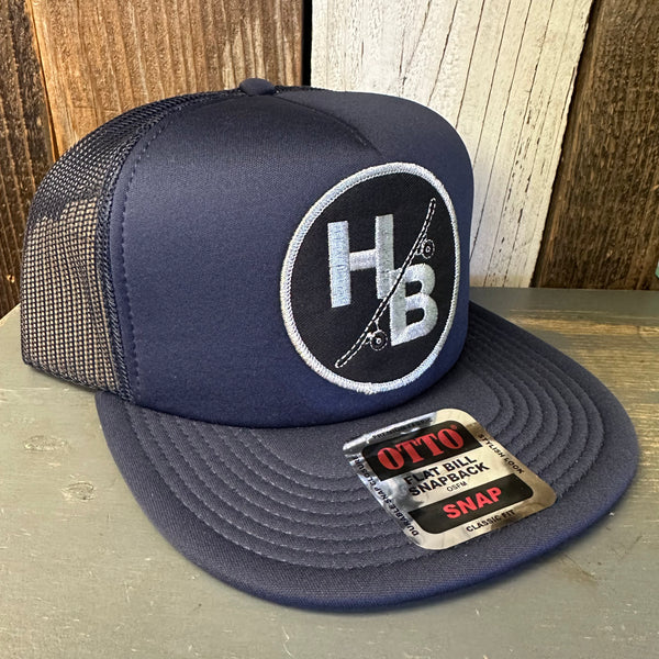 Hermosa Beach SKATEBOARDING WAS NEVER A CRIME Trucker Hat - Navy (Flat Brim)