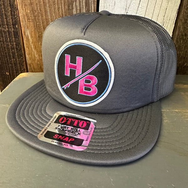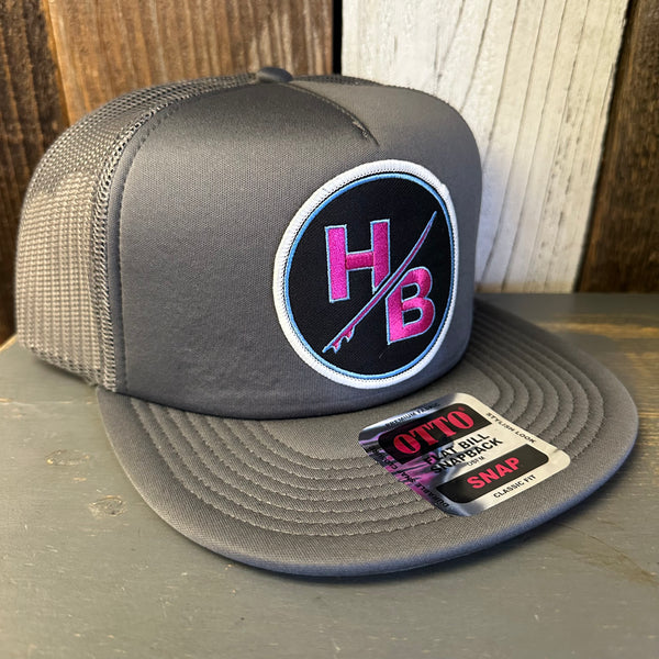 Hermosa Beach SO PITTED! :: HB SURFBOARD Trucker Hat - Charcoal Grey (Flat Brim)