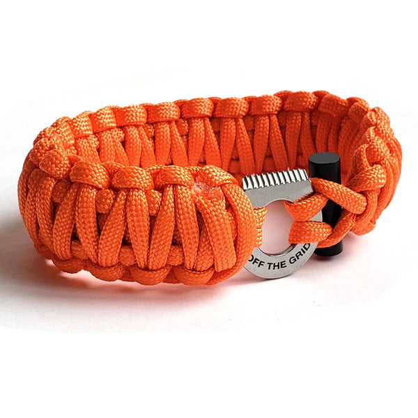 "Off The Grid" Survival Bracelet is a great gift for any hiker, camper or backpacker. Super handy in the wild, with 18'ft of 550lb cord and a fire starter on each bracelet.