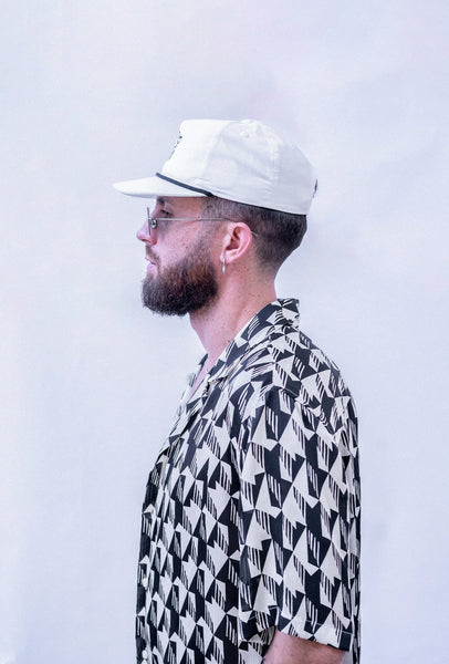 The Original Snapback Hat / Cap in white featuring black rope and embroidered Shepherd detail.