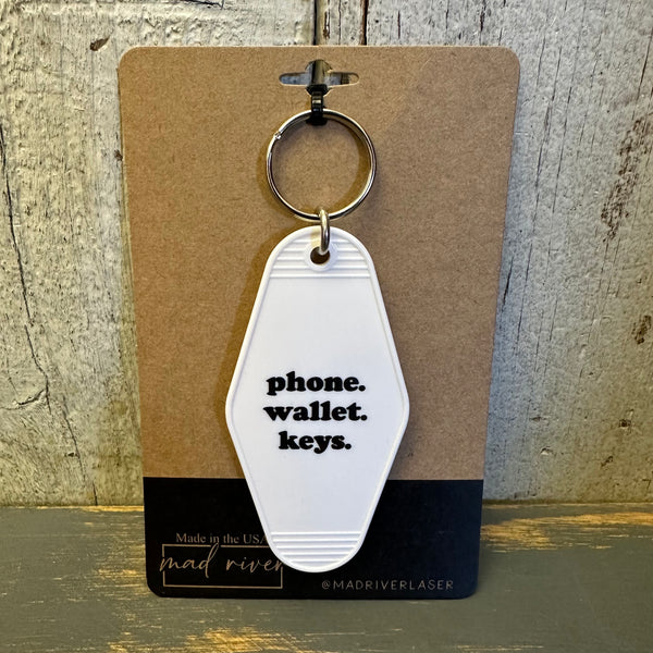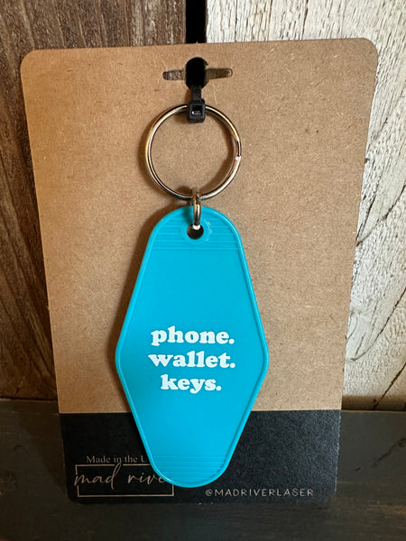 UV Printed Retro Hotel Keychain - phone wallet keys Includes silver keychain.