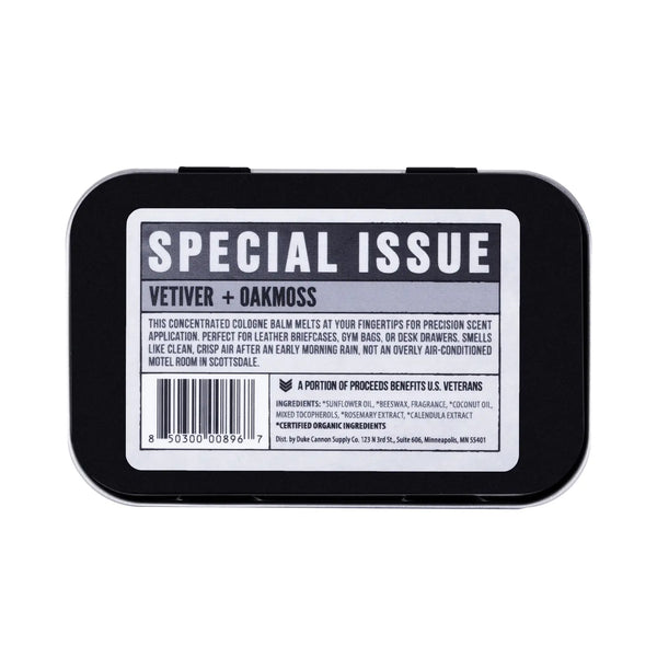 This Special Issue Vetiver + Oakmoss scent will not be around long. A collision of modern and classic profiles, the scent starts with bright, modern notes of fresh air that give way to sophisticated base notes of sandalwood, vetiver, and oakmoss.