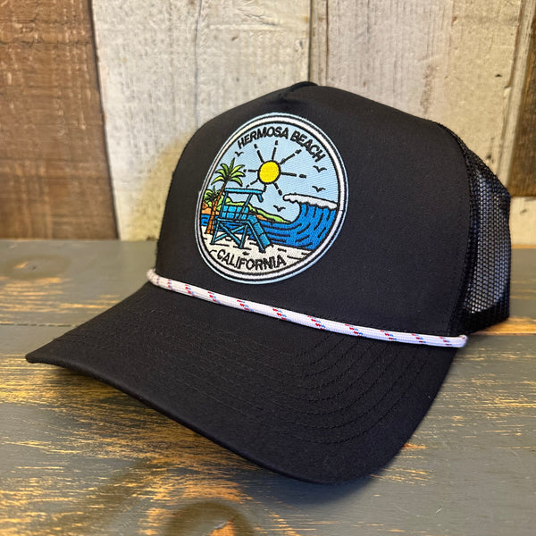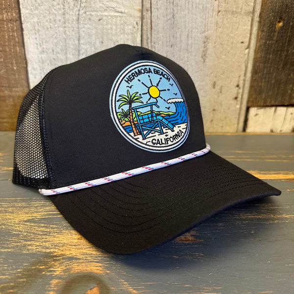 Hermosa Beach SHOREFRONT High Crown 5-Panel Rope Trucker Hat - Black/White Rope