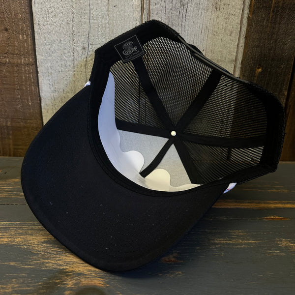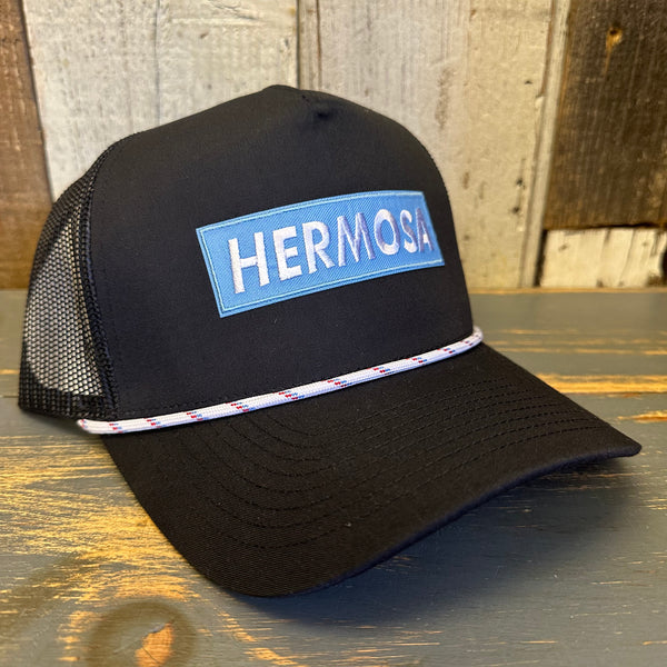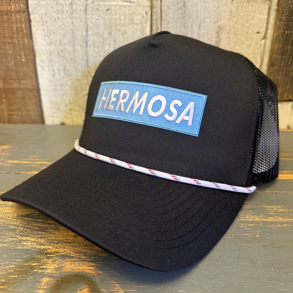 Hermosa Beach SURF HERMOSA :: OPEN DAILY High Crown 5-Panel Rope Trucker Hat - Black/White Rope
