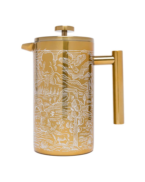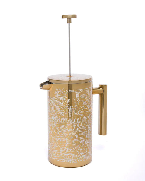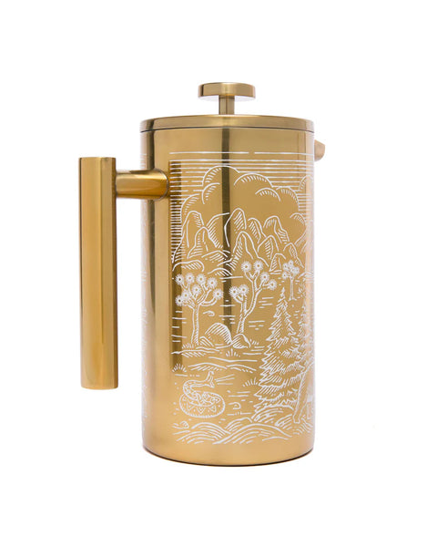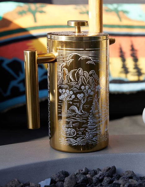 Elevate your coffee experience, anywhere. Our National Parks Brass French Press is designed for both indoor and outdoor use. Made with stainless steel and insulated, it’s the perfect companion for your morning rituals.