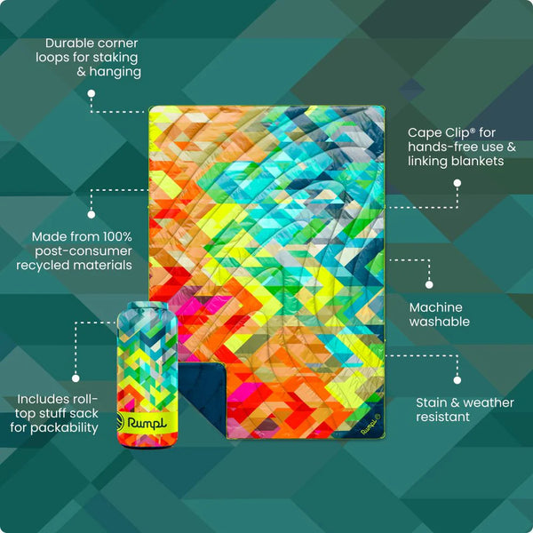 Meet the blanket that launched a brand – the original "blanket for everywhere," Rumpl's most iconic silhouette, and number one bestseller. Now in Geo Fresh - a fresh spin on our best-selling Geo print.
