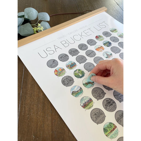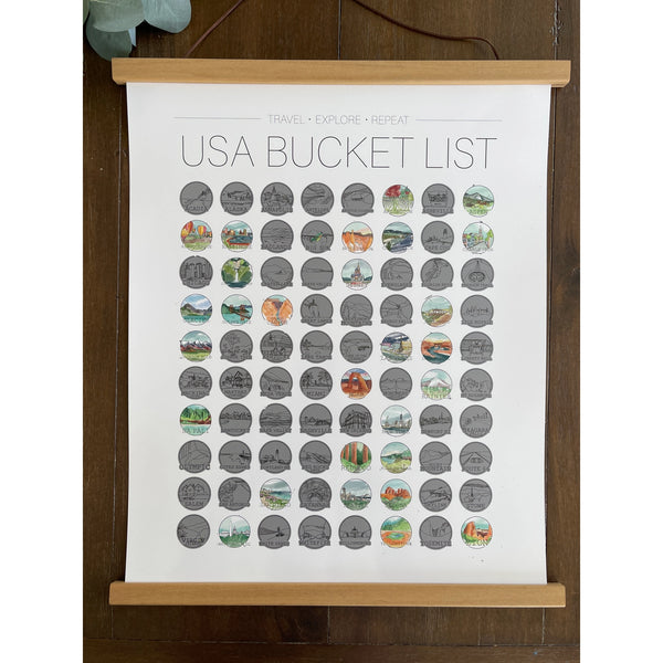 This is a new product and has been quickly becoming a favorite. With travel coming closer to home these days, this US bucket list is the perfect way to keep up your adventures and inspire new places to see. Each icon was carefully drawn and painted and it shows in the details of the work. Included, are 80 iconic destinations across the US.