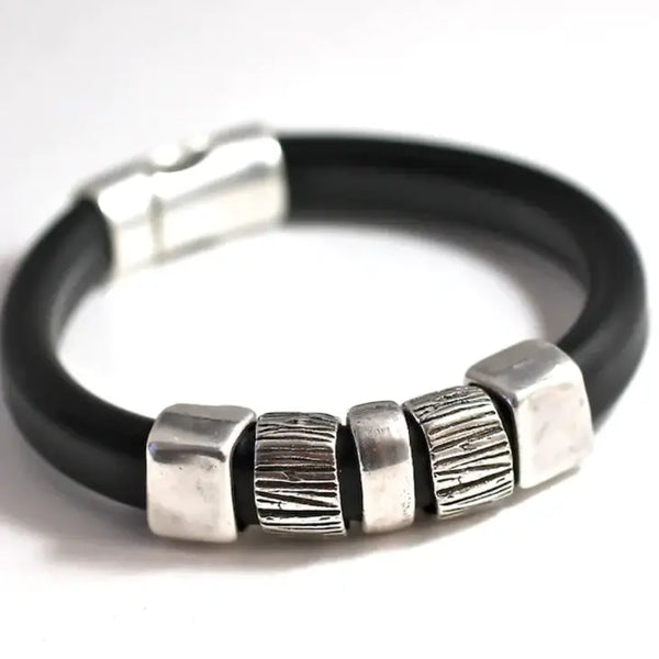 Handmade item Materials: Silver A heavy rubber bangle perfect for him or her, especially if you are an earth friendly vegan.